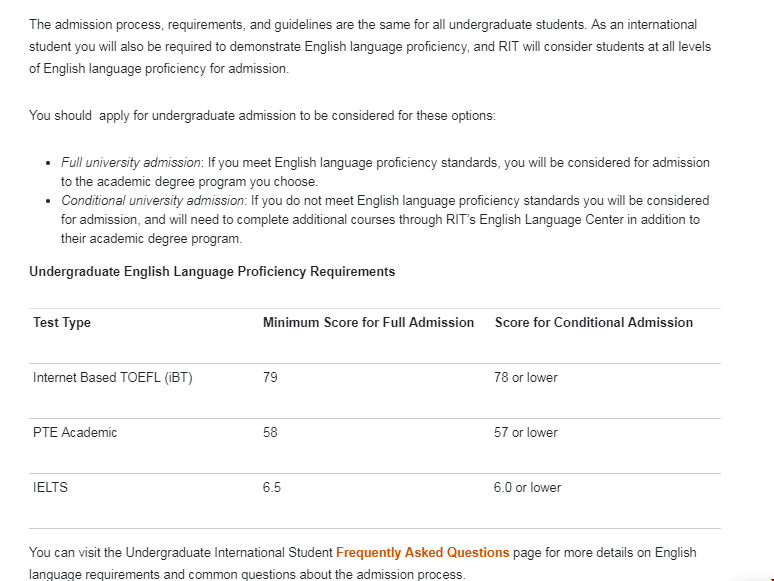 摘要:罗彻斯特理工学院语言要求,一般本科生接受直接录取和有条件,所以语言分数不达标的需要参加语言课程,研究生因不同项目,最低分数要求存在差异,但是整体而言,托福最低不低于80分,雅思不低于6.5分。下面是Hanna老师给您带来的完整解析。