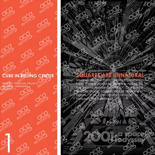 A:应该是第一个项目吧,The Cube in Beijing Center。我一直对古建筑和中国文化比较感兴趣,很喜欢故宫,也很想表达出来我对它的一些感情和看法。这次有了这个机会。多亏了ACG的张老师给我提供了表一个表达形式,就是《2001 太空奥德赛》里面的那种方体。
