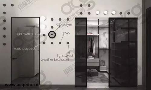 神奇的墙面:整个项目中设计最出彩的地方,利用APP的原理,把墙面也布置成操作界面一般的存在。