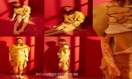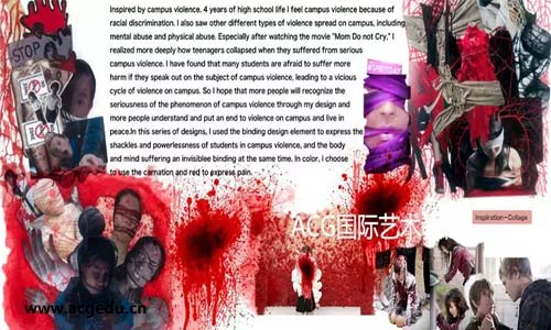 所以我希望更多的人可以通过我的设计意识到校园暴力现象的严重性,更多的人可以理解并结束校园暴力,让同学们和平共处。在这个系列的设计中,我用绑定设计元素来表达学生在校园暴力中的枷锁和权力,同时身体和心灵受到不可见的束缚,在颜色上,我选择用康乃馨和红色来表达痛苦。