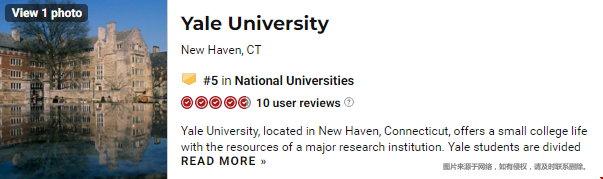 摘要:耶鲁大学美国最新排名第5,相对于2021年而言,下滑一位,其中也入围了全美本科最具价值大学排名第一的好成绩,下面Hanna老师就带您仔细去看看吧!