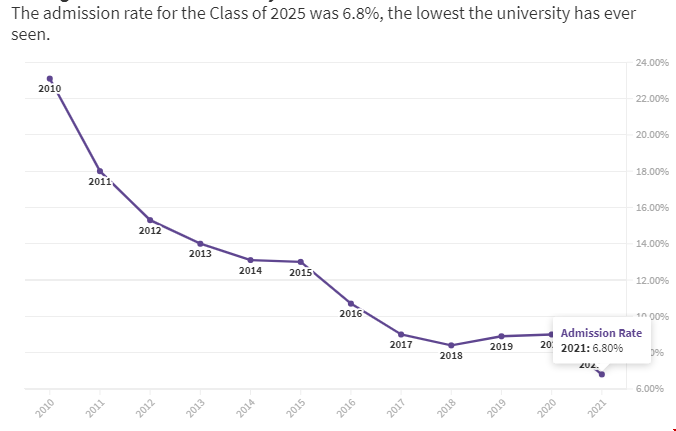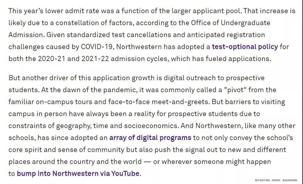 一方面因为疫情影响,西北大学在2020-21和2021-22入学周期都采用了test-optional政策,这推动了申请。