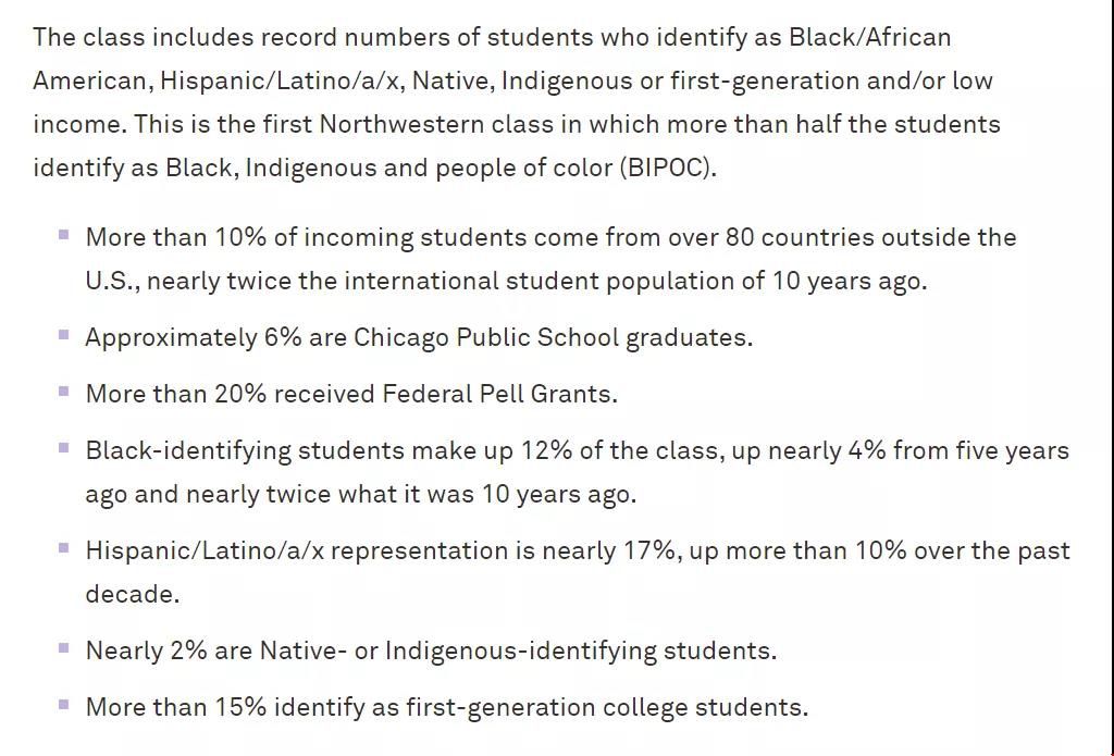 2)这些学生构成了西北大学历史上最多样化的新生班级,他们几乎来自美国的每一个州和世界的每一个角落。