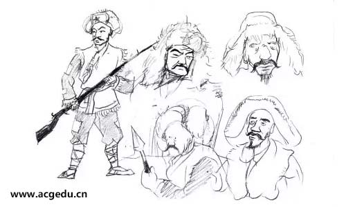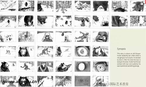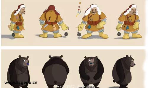 我选择了在中国被雪覆盖多年的鄂伦春绿洲地区作为故事的背景。人们的着装非常特别,充满民族特色。裘皮服装很常见,以某种方式表明它们习惯于狩猎。整个环境的设定注重自然的魅力和尊严。在角色设计中,为了展现猎人和熊之间的相似性,我把他们的双眼设计成一个大一个小,意想不到的滑稽也让我觉得更喜欢这个设计。