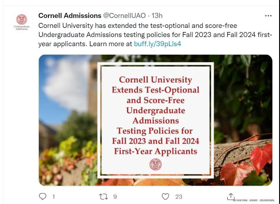 康奈尔大学SAT/ACT可选政策延期至2024Fall