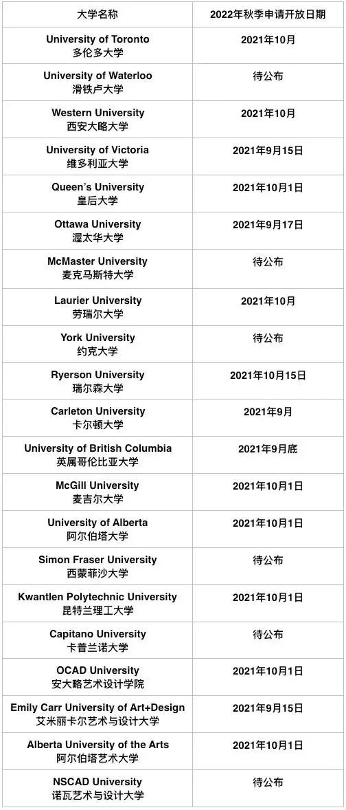 时间已进入9月,不少国外大学都已经开放2022年秋季入学申请通道,2022年的加拿大大学申请已然拉开帷幕。