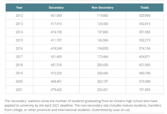 根据安省大学申请中心(ontario University Application Centre,简称OUAC)的初步数据显示,2021年秋季学年,安省大学的申请人数在过去一年中增加了超过3万人!