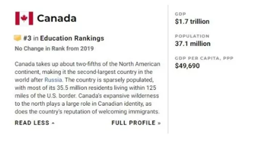 在2018年和2019年,加拿大教育位居全球第一和第二,这说明加拿大的教育一直以来实力雄厚,教育十分优秀。