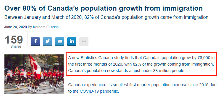 尽管疫情冲击,但新移民和留学生入关总数下降是既定事实,但加拿大统计局最近发布的统计信息可能令人震惊 ——2020年第一季度,加拿大人口增长率为五年最低点,其中80%来自新移民。