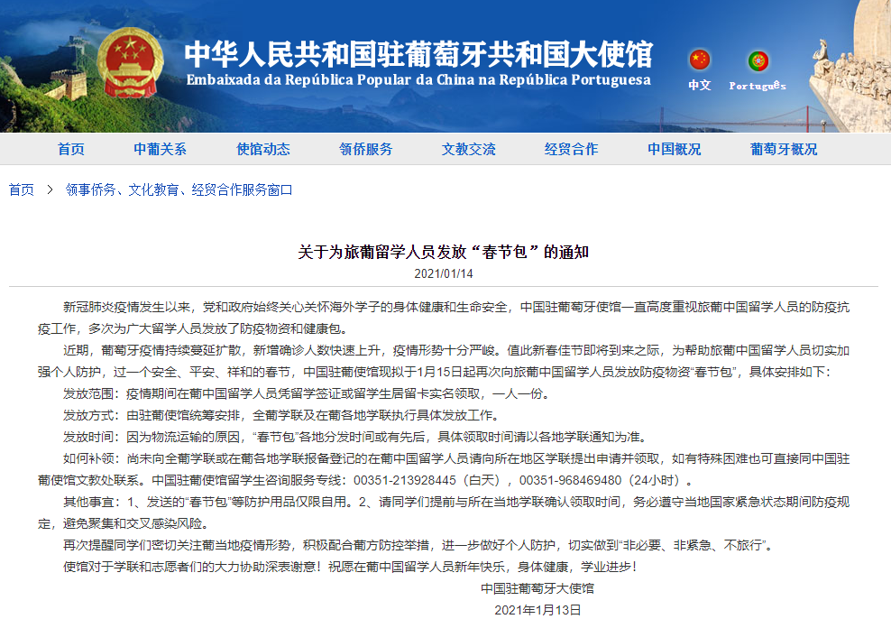 目前已经陆续有大使馆在官网公布有关“春节包”的信息。