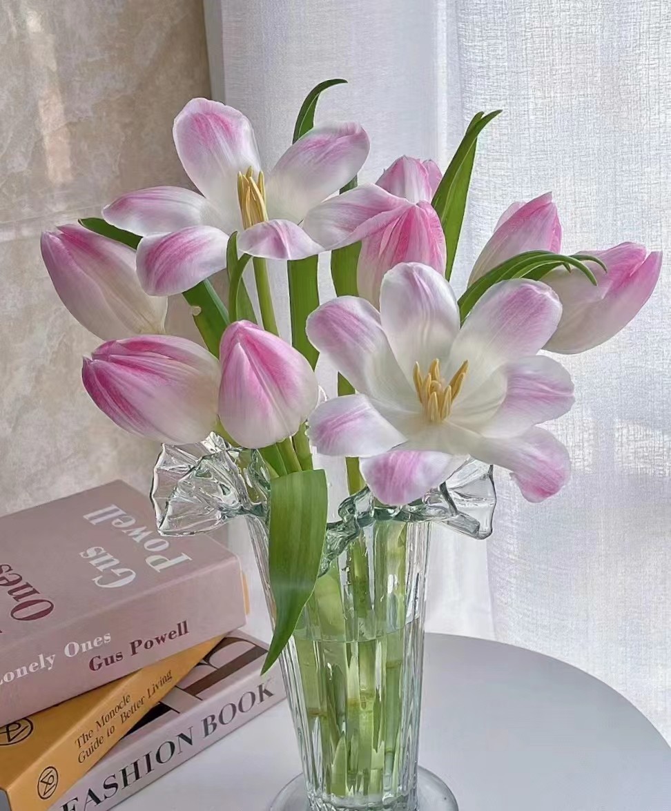把花枝末端2-3厘米放进开水中浸烫约2-3分钟后,立即把它浸到冷水中,再插进花瓶。这种方法适用于花枝较柔软的鲜花,如郁金香、牡丹花等。