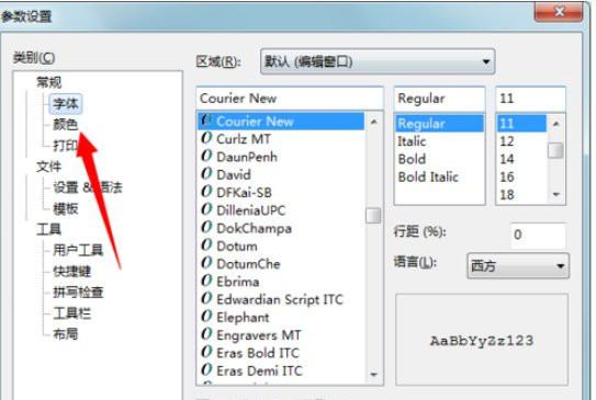 3、再进入字体设置界面,点击右方【常规选项】【颜色】;