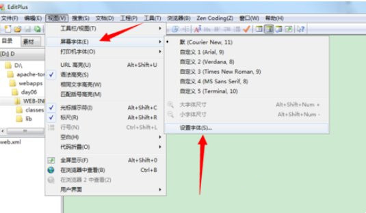 2、接着在弹出的视图菜单中,点击【屏幕字体】,然后点击【自定义字体】;
