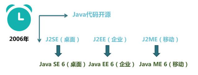 2006年,java发生了两次大事件,一是创建java的Sun公司宣布会把所有Java代码开源,开源了,就意味着我们Java开发者终于可以查看Java核心代码,了解JDK等核心架构。二是终结了从JDK 1.2开始有了8年历史的J2EE、J2SE、J2ME的命名方式,正式启用Java SE 6、Java EE 6、Java ME 6的命名方式。
