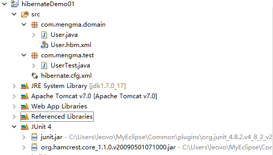 添加后在项目中会多出两个关于 JUnit4 的 JAR 包,在 MyEclipse 中的显示如图所示。