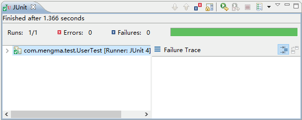 单击 JUnit Test 选项后,运行的结果如图所示。
