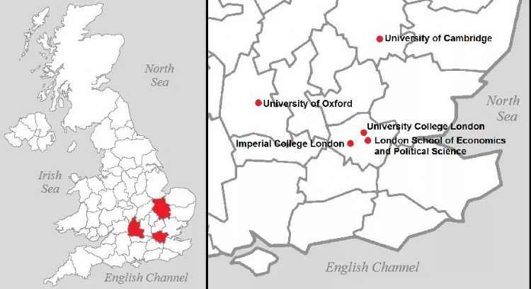 剑桥大学、牛津大学、帝国理工学院、伦敦大学学院、伦敦政治经济学院并称“G5超级精英”大学,是顶尖的英国研究型大学,代表了英国最高水平的科研实力、师生质量和经济实力。其中剑桥大学,牛津大学,伦敦大学学院和帝国理工学院常年占据世界大学排行榜前十名。
