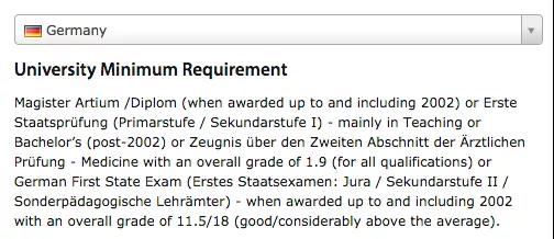 ▎各种德国文凭均需要至少1.9;第一司法考试分数需要至少11.5/18