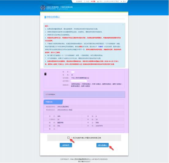 7、 进入资格信息确认页面,确认学籍信息、资格信息正确: