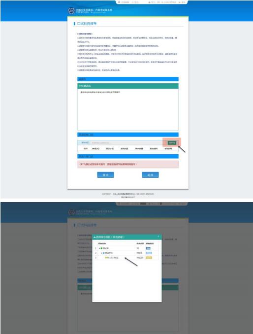 如笔试报名校区不允许报考外校口语,此处“选择”按钮会不显示,自动选定笔试报名校区、加载学校通告。