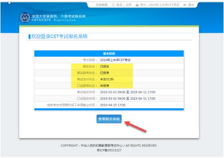 23、 有未报考科目或未支付的考生须点击“查看报名信息”,再次进入报名信息页面选择。