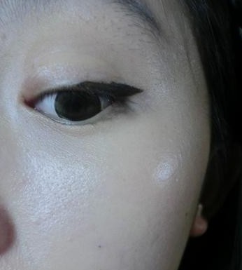 步骤二:使用黑色的眼线笔在上睫毛的根部画出一短三分之一的眼线,这样就有放大双眼的效果。