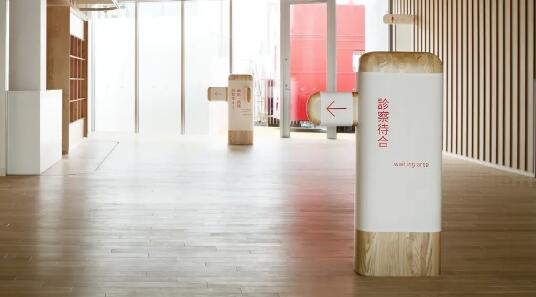 其中最大特色就是标识部分是由布做成的。具有标志的每一块布都能取下来清洗,使医院环境多了一份亲近和温柔。这也是为了让医院能够传达出柔和的空间感觉。