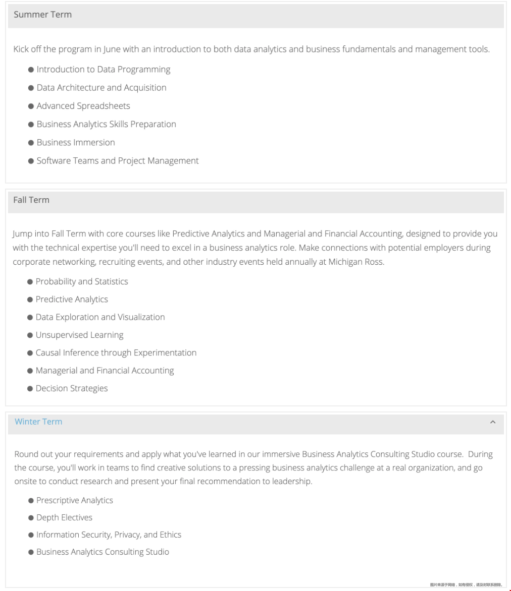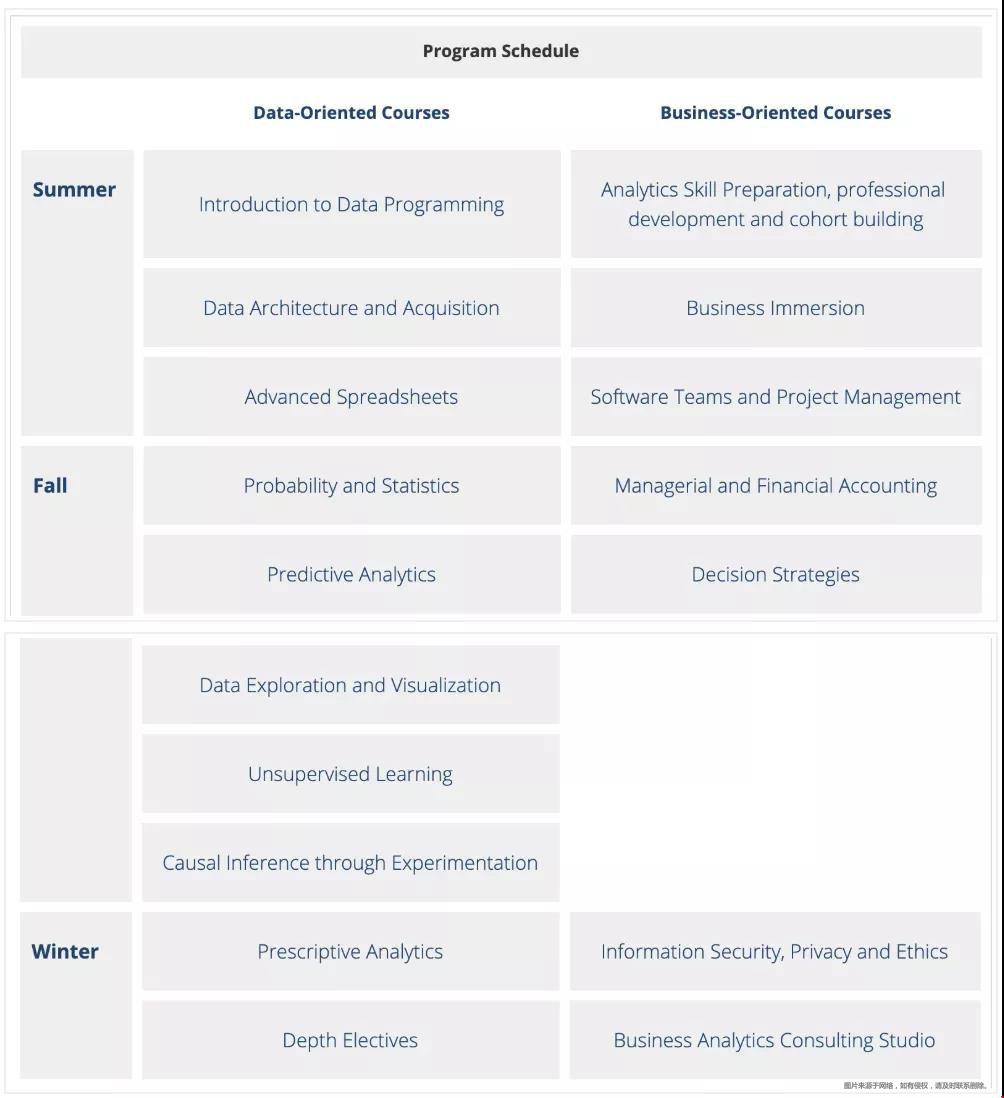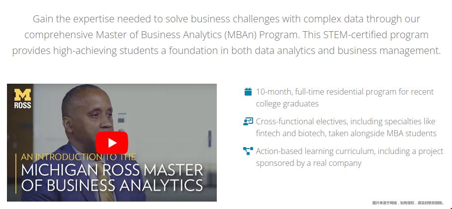 2)项目介绍:是一项开设在商学院下面的学制时长在10个月的STEM专业,学生将通过这个项目获得解决复杂数据业务挑战所需的专业知识,为学生提供了数据分析和业务管理方面的基础。