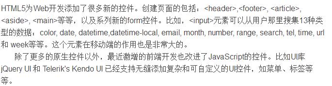 HTML5通过标准化一系列针对常用Web应用程序的APIs实现了跨平台,还包括开发离线应用程序、浏览器数据存储和免插件的视音频APIs。