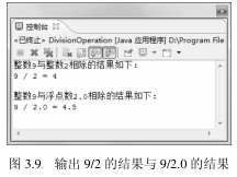 运行程序,结果如图 3.9 所示,从输出结果可以看出,9/2 的结果与 9/2.0 的结果是不相等的。