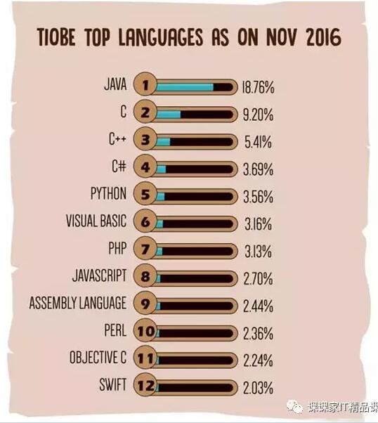 超实用技术,高薪资的诱惑以及优越的办公环境,令程序员的工作一直是备受社会各界的关注的职业。2016年11月的TIOBE排名结果中显示:Java