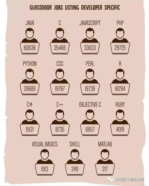 根据Glassdoor的一份列出了开发者的工作事项。如果按开发人员的类别排名,最需要的是 Java开发人员。在调查报告指出,在排名前20位,最能赚钱和需求最大的工作岗位中,超过一半的岗位要求求职人员具备编程开发的技术,因此,想要或得高薪就要求你具备意向过硬的技能。