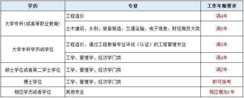 (专业要求:不限制专业,非相关专业也可以报考,只是相关工作年限要求增加一年。)>>广西一级造价师考试报名资质审核