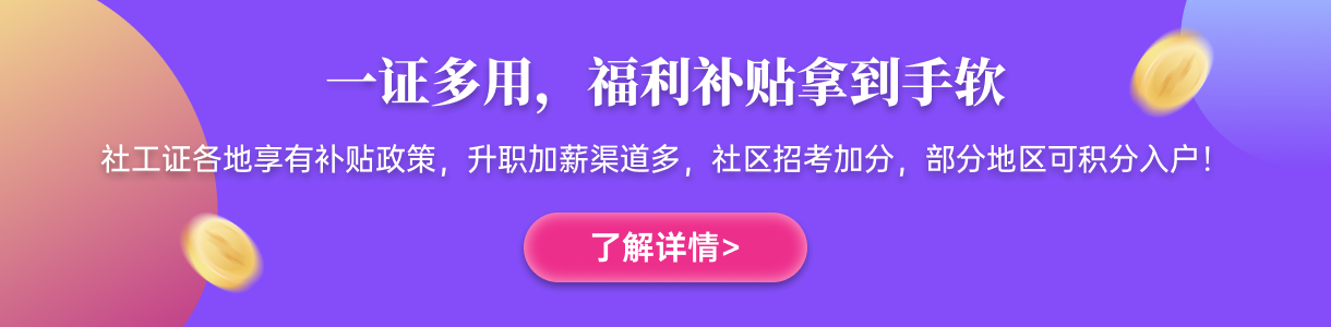 考取社工证首先可以在社保局获取一笔补贴1000-3000 元不等,每个月有证 的也会多300-800元补贴,其次就是工作稳定,五险一金都有,也可以积分落户到大城市,享受更好的教育、医疗保障。