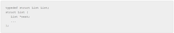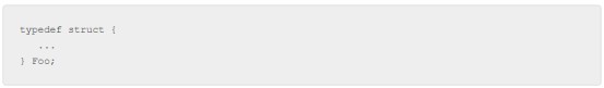 在C中声明结构(以及联合和枚举)的方式非常独特,因为关键字“struct”后面的标识符是一个标记(例如,struct Foo{…};)。有趣的是,标记(例如,Foo)占用的命名空间与变量、函数和类型不同。此类标记不能单独使用,但必须始终以关键字“struct”开头,以形成详细的类型说明符。这些隐藏标记名的规则可能是C语言设计中的一个错误,我建议遵循Dan Saks的指导原则将标记转换为typedef[1]。对于简单(非自引用)结构,声明根本不需要使用标记: