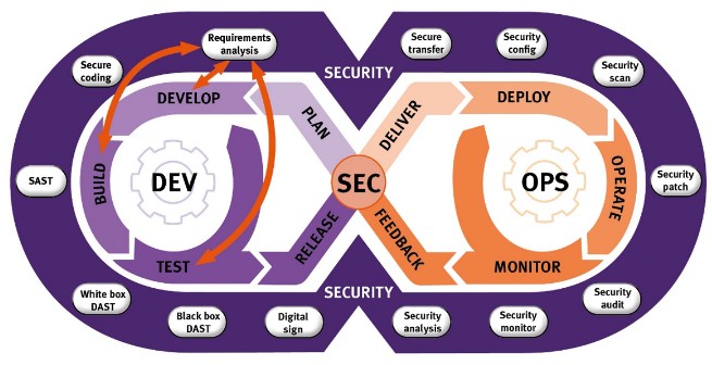 在DevSecOps模型中,DevOps生命周期在整个持续开发过程中与安全相关的活动相叠加(图2)。