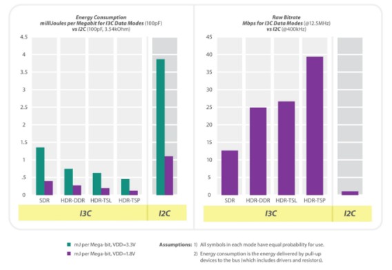 I3C和I2C的能耗和原始比特率