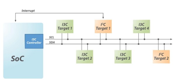 l 向后兼容I2C,并允许在一个设备中混合使用I2C和I3C组件。